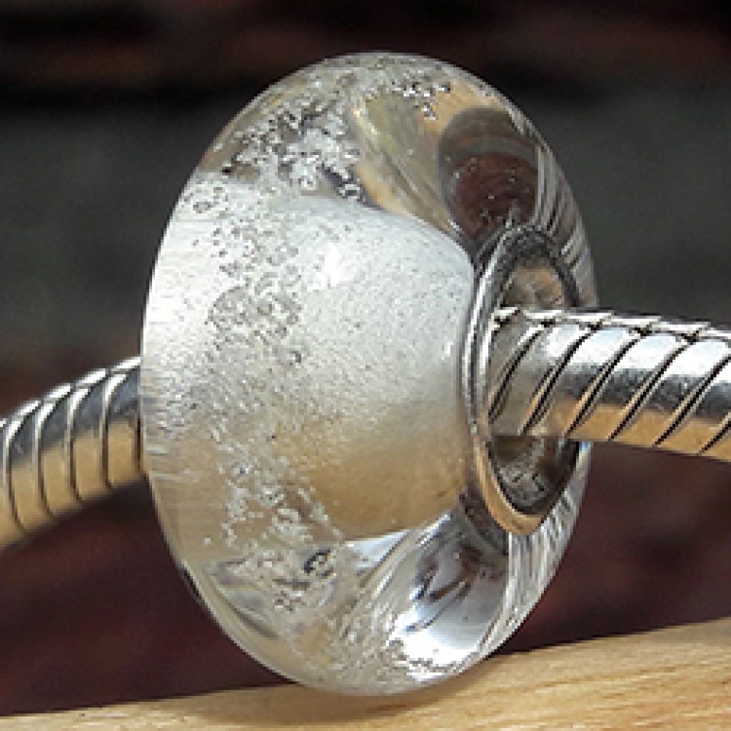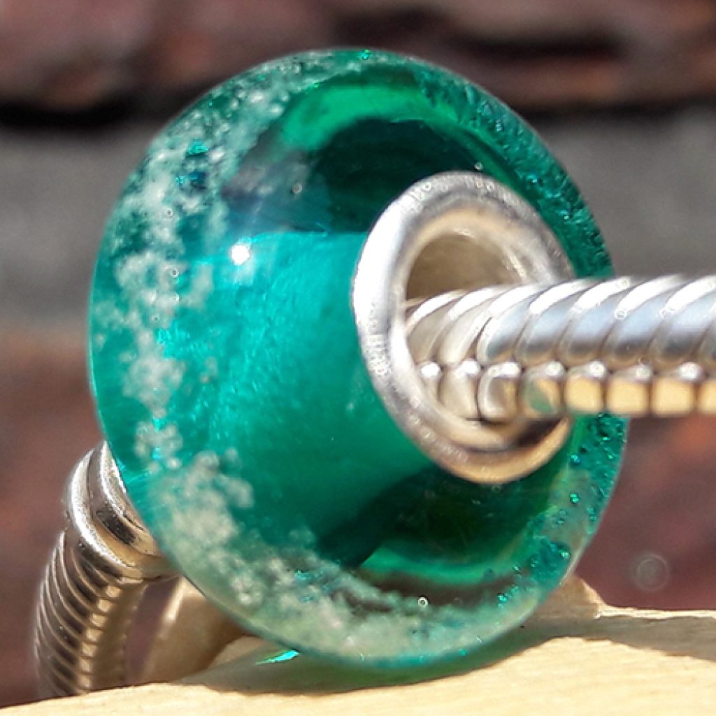 De glasbedel is geschikt voor het dragen aan de bedelsystemen van o.a. Pandora en Trollbeads. De as wordt tijdens het vloeibaar maken van het glas tussen twee laagjes glas verwerkt en als decoratie als een streep in de glasbedel gewikkeld, wat een bijzonder effect geeft.