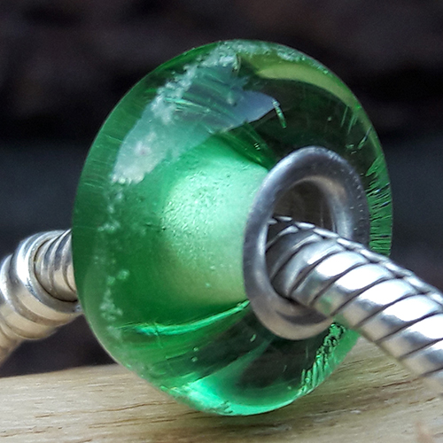 De glasbedel is geschikt voor het dragen aan de bedelsystemen van o.a. Pandora en Trollbeads. De as wordt tijdens het vloeibaar maken van het glas tussen twee laagjes glas verwerkt en als decoratie als een streep in de glasbedel gewikkeld, wat een bijzonder effect geeft.
